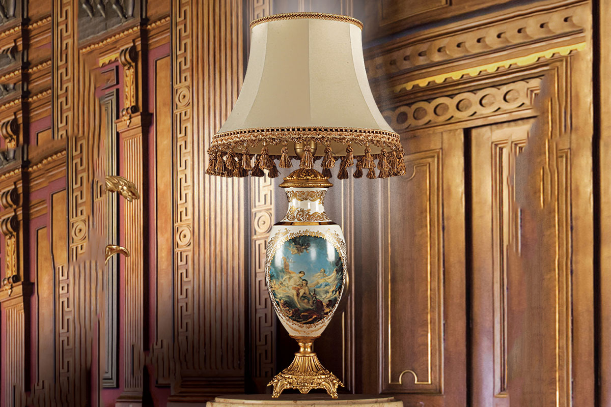 Trong thế giới nội thất sang trọng, đèn bàn IR3171-2 nổi bật như một kiệt tác nghệ thuật. Với thân đèn lấy cảm hứng từ bình hoa trong cung điện Ba Tư, được trang trí bởi bức tranh về những thiên thần may mắn và chao đèn điểm xuyết những tua rủ tinh tế, sản phẩm này không chỉ là nguồn sáng mà còn là điểm nhấn đẳng cấp cho mọi không gian.