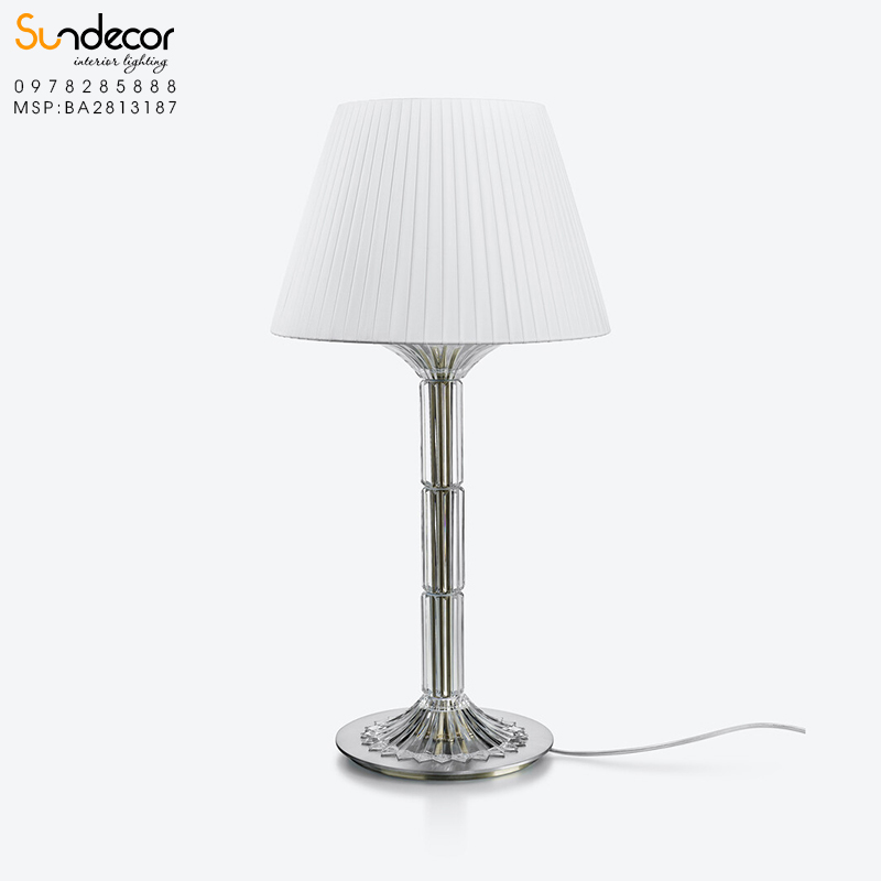 Đèn bàn pha lê BA2813187 được chế tác từ pha lê cắt vát tinh xảo, với các mặt cắt sắc bén, tạo hiệu ứng ánh sáng trong suốt, phản chiếu lung linh trong không gian. Bên trên là chao đèn bằng vải cao cấp nhập khẩu từ Ấn Độ, mang lại sự mềm mại, giúp ánh sáng trở nên dịu dàng hơn.