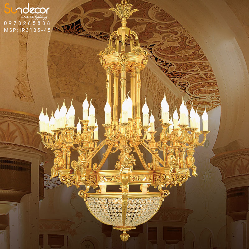 Đèn chùm đồng IranIR3135-45 là một tác phẩm nghệ thuật được chế tác tỉ mỉ, tinh tế từ đồng mạ vàng 99.99 Thụy Sĩ, kết hợp cùng những chi tiết pha lê trắng trong suốt, như những ngọn nến lung linh trong bóng tối.
