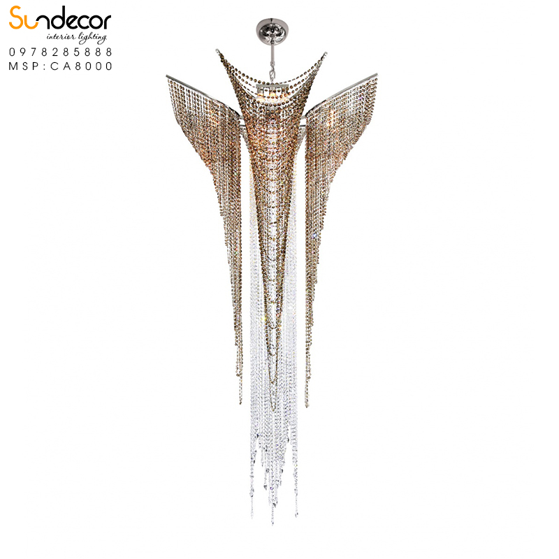 Đèn chùm pha lê cao cấp Atlantida không chỉ là điểm nhấn cho không gian mà còn là sự khẳng định về gu thẩm mỹ và phong cách sống của gia chủ. Với kích thước bề dài 100cm và chiều cao 200cm, đèn chùm thích hợp cho những không gian lớn và sang trọng, nơi ánh sáng pha lê có thể phát huy tối đa sự lấp lánh và quyến rũ của mình.