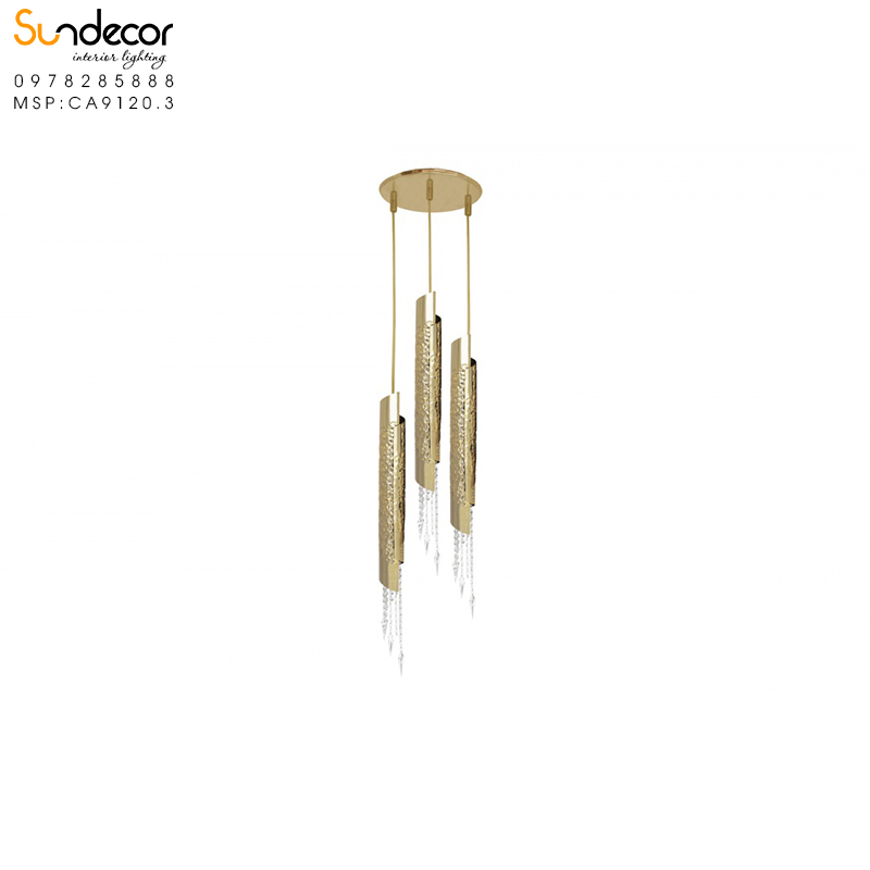 Phần thân đèn được làm từ đồng và brass, mạ titan vàng 24K, mang đến vẻ đẹp sang trọng và bền bỉ theo thời gian. Sự kết hợp giữa màu vàng đồng ấm áp và pha lê trong suốt tạo nên một tổng thể hài hòa, tinh tế, biến đèn chùm pha lê phòng khách này thành một tác phẩm nghệ thuật đích thực.