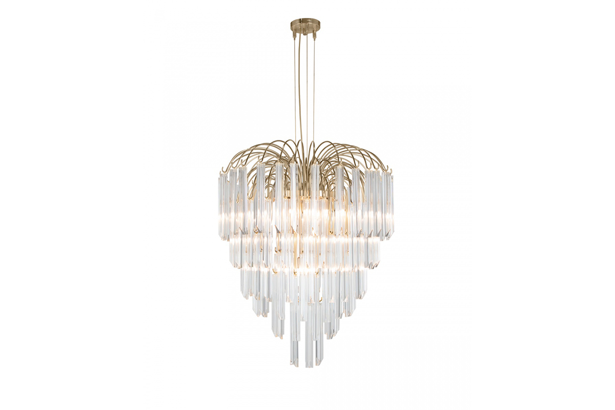 Đặc biệt, Lotus Suspension sử dụng pha lê Asfour từ Ai Cập – dòng pha lê hàng đầu thế giới, nổi tiếng với độ trong suốt cao lên tới 99% và khả năng tán sắc 7 màu tuyệt vời. Sự kết hợp giữa màu vàng đồng ấm áp của khung đèn và màu trong suốt lấp lánh của pha lê tạo nên một tổng thể hài hòa và tinh tế, làm nổi bật vẻ đẹp của đèn pha lê phòng khách này trong mọi góc nhìn.