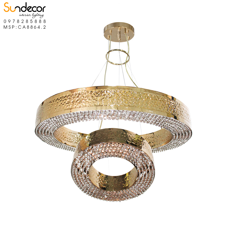 Đặc biệt, với thiết kế vòng tròn kép độc đáo, đèn chùm này còn có thể được sử dụng như một tác phẩm nghệ thuật, tạo điểm nhấn ấn tượng cho các không gian hiện đại và sang trọng.