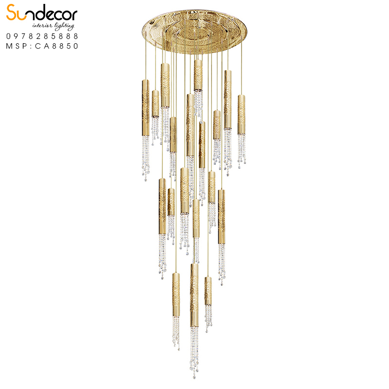 Với thiết kế độc đáo và kích thước ấn tượng, đèn chùm pha lê CA8850 là lựa chọn lý tưởng cho nhiều không gian khác nhau: