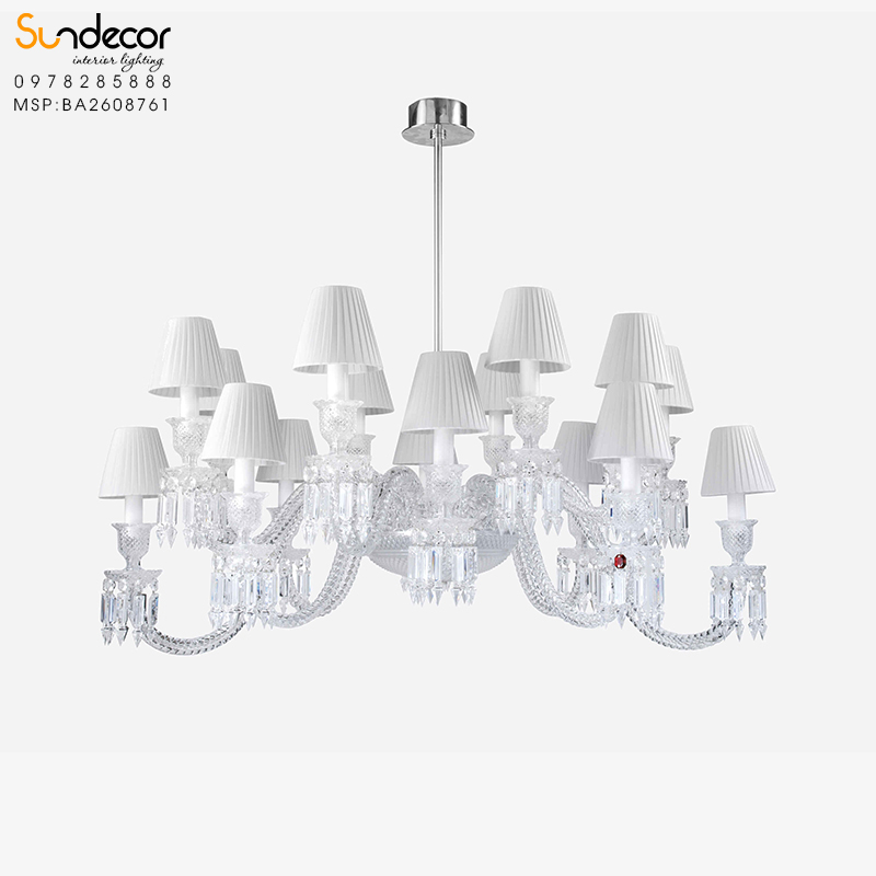 Chao đèn của BA2608761 được làm từ vải cao cấp nhập khẩu từ Ấn Độ, không chỉ đảm bảo tính thẩm mỹ mà còn tạo ra ánh sáng dịu nhẹ, ấm áp. Sự kết hợp giữa pha lê và vải tạo nên một tổng thể hài hòa, vừa sang trọng vừa tinh tế, phù hợp với nhiều phong cách nội thất khác nhau.