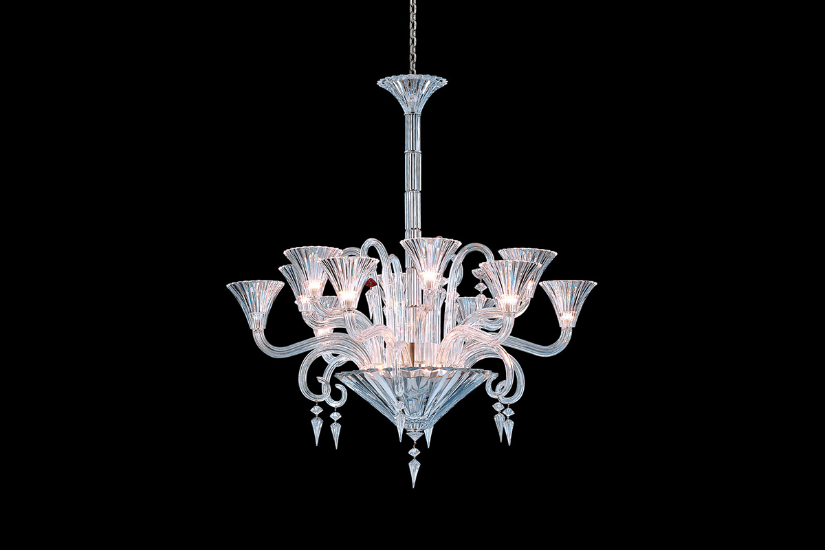 Thiết kế 12 tay đèn rộng 90cm và cao 105cm không chỉ giúp đèn chùm Mille Nuits chiếm lĩnh không gian mà còn tạo điểm nhấn mạnh mẽ, thu hút ánh nhìn. Sự hoàn hảo trong từng chi tiết, từ nhánh đèn đến chiếc bát pha lê lớn, đã khẳng định đẳng cấp và giá trị nghệ thuật của mẫu đèn chùm này.