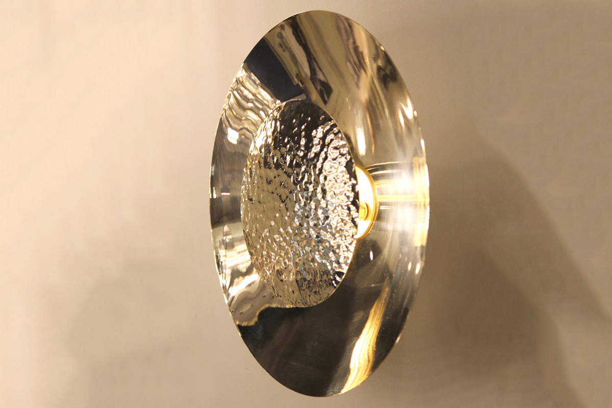 Lấy cảm hứng từ hiện tượng nhật thực, khi mặt trăng dần che khuất mặt trời và tạo ra một khoảng khắc thiên nhiên hùng vĩ, đèn tường pha lê Eclipse Wall Light tái hiện lại sự kỳ diệu này bằng thiết kế độc đáo. Hai tấm đồng tròn được đặt đối diện nhau, cách nhau một khoảng nhỏ, chỉ để ánh sáng len lỏi qua khe hở như vầng trăng khuyết. Sự kết hợp này tạo nên ánh sáng mềm mại, ấm áp, mang lại cảm giác thư thái và yên bình cho không gian sống.