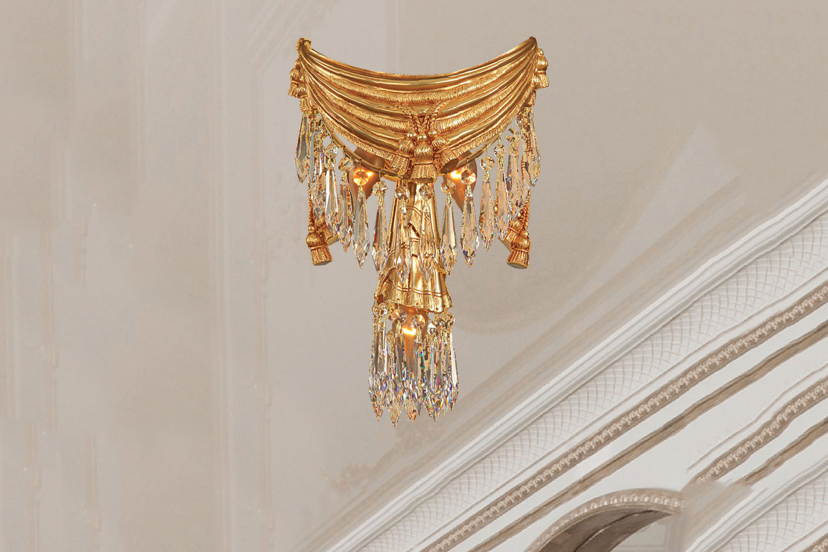 Với hình ảnh những chiếc khăn che mặt của phụ nữ Ai Cập, đèn tường này được thiết kế từ nét duyên dáng ấy mang đến cho sản phẩm vẻ đẹp tinh tế. Khăn che mặt của phụ nữ Ai Cập được xem như biểu tượng của sự bí ẩn và quyến rũ, được tái hiện qua những khối pha lê Asfour trong suốt tinh tế, giống như cách các nàng khoác lên mình chiếc khăn lụa nhẹ nhàng nhưng kiêu hãnh.