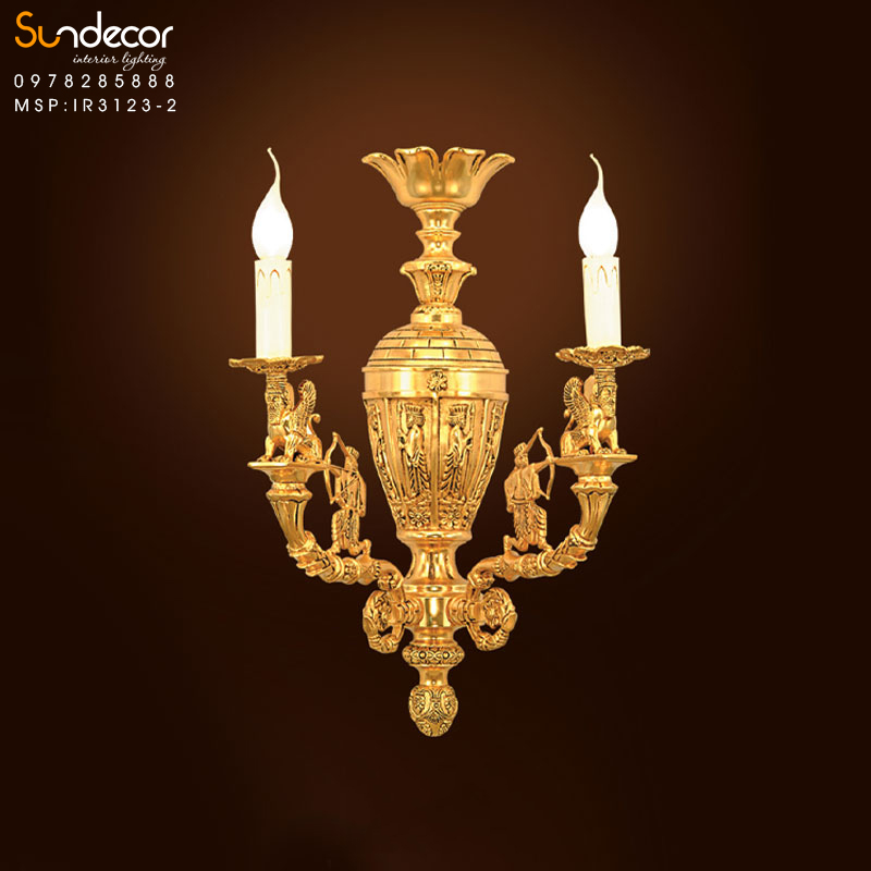 Đèn tường Iran mạ vàng IR3123-2 lấy cảm hứng từ chiếc bình tài lộc trang trí tinh xảo, được coi như một tác phẩm nghệ thuật mang đậm dấu ấn của Ai Cập cổ đại.