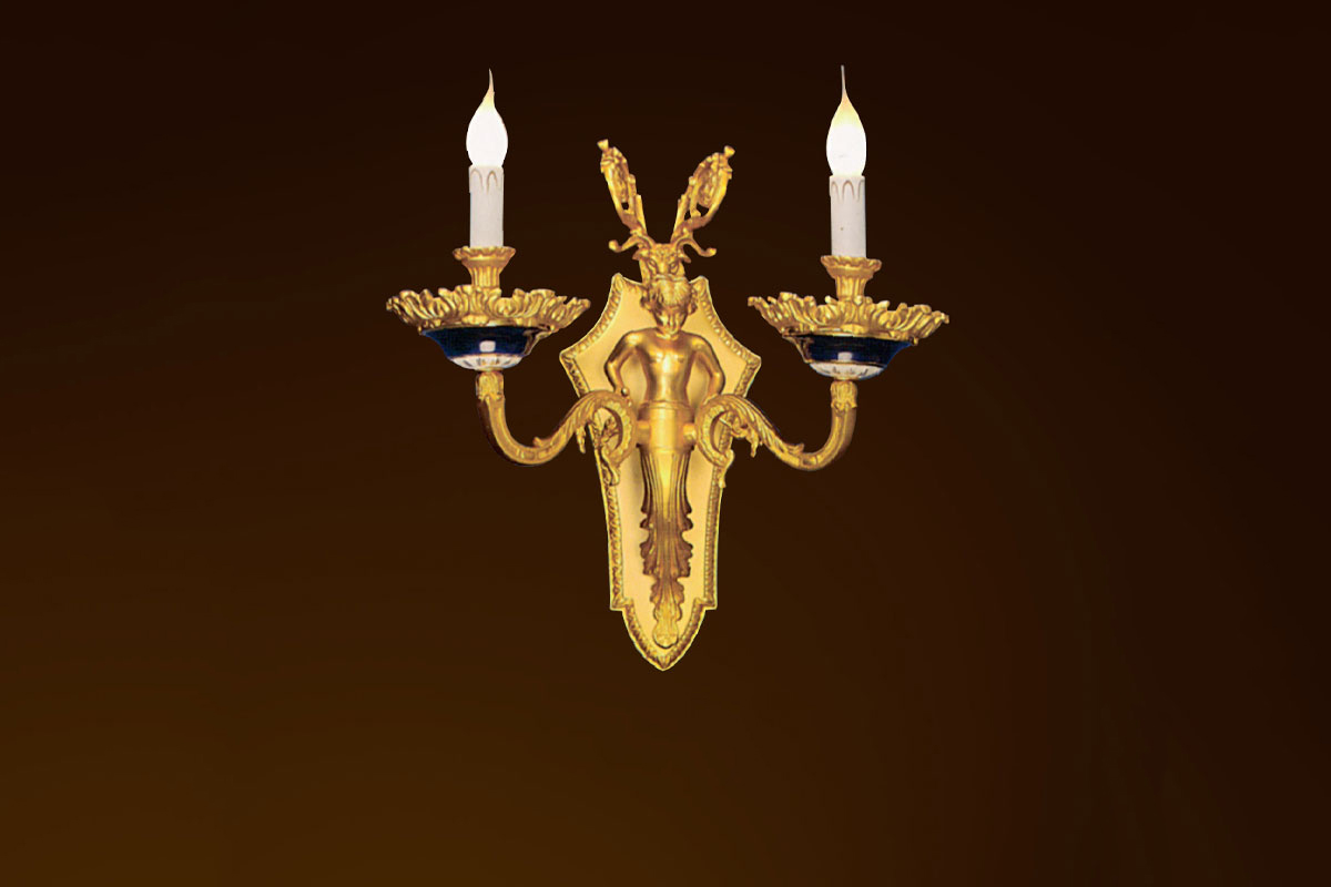 Mẫu đèn tường trang trí này được chế tác từ chất liệu đồng mạ vàng 99.99 Thụy Sĩ kết hợp với pháp lam, tạo nên vẻ đẹp sang trọng và bền bỉ.