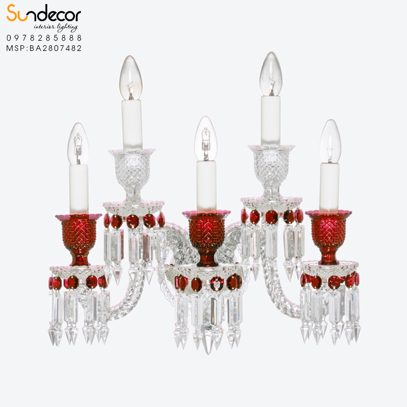 Đèn tường pha lê Pháp Zénith Wall Sconce BA2807482 – Kiệt tác ánh sáng với 5 cánh hoa pha lê đỏ rực rỡ, mang đến vẻ đẹp sang trọng và quý phái, màu đỏ mang lại ý nghĩa may mắn, hạnh phúc cho không gian của người sử dụng.