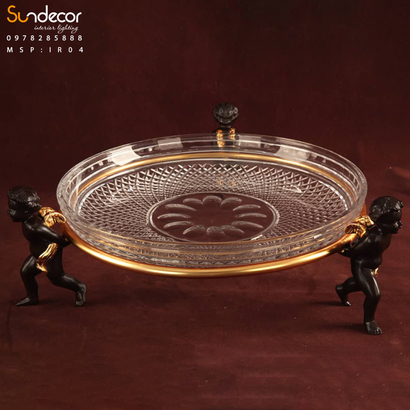 Mẫu đồ decor trang trí IR04 được thiết kế như một chiếc khay trang nhã, vừa có thể đựng hoa quả, bánh kẹo, vừa làm điểm nhấn cho không gian phòng. Sản phẩm kết hợp chất liệu đồng thau mạ vàng cao cấp với pha lê Ai Cập cắt xiết tinh xảo, tạo nên vẻ đẹp quý phái và sang trọng.